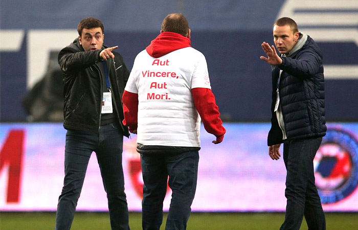 Поклонника увели с поля, при всем этом работник «Динамо» пнул его сзади.